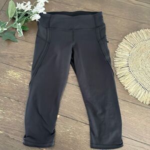 Lululemon Capris Leggings in Black size 4 ruched style on hems pockets