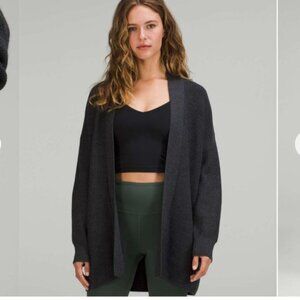 Lululemon Cardigan 4 Merino Wool Blend Ribbed Long Wrap Sweater Heathered Black