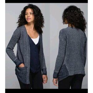 Lululemon Cardigan Women US 6 Marled Navy Knit Ribbed Vestigan Athleisure Cotton