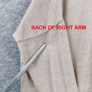 Condition: Good used condition. There is a small flawa tiny hole on the back of the right arm as shown in the close-up photo. I got the point of my thread cutting scissors caught in the sweater. No other notable flaws. Please see all photos for details.