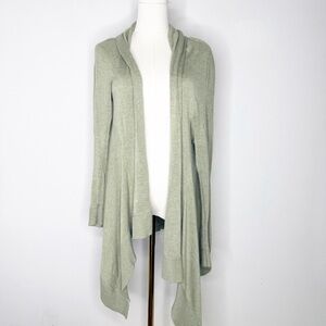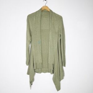 Lululemon wrap cardigan, green lululemon sweater, Cashlu knit, S/M cardigan, open front cardigan, yoga lounge sweater, heather green sweater, draped cardigan, athleisure wear, lululemon layering piece, cozy lululemon cardigan, lightweight knit sweater