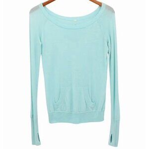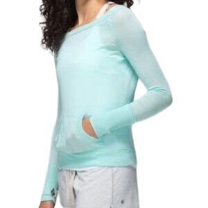 Soft and breathable with an easy, relaxed fit — this Lululemon Chai Time Pullover II is crafted from a lightweight knit in heathered aquamarine. Designed with thumbholes, front pockets, and a ribbed hem for casual layering from yoga studio to street.