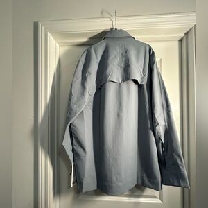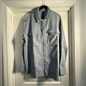 Stylish light gray button-up jacket with a sleek design. Perfect for casual or formal wear.