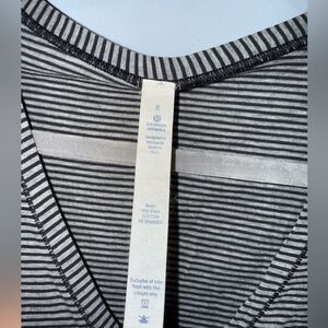 Keywords: Lululemon top, Lululemon Circadian, Lululemon striped long sleeve, grey black Lululemon, women’s athletic top, lululemon layering shirt, lululemon yoga shirt.