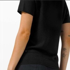 Lululemon City Calm Cashmere Knit Polo Sweater Black Blouse