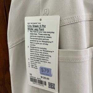 Lululemon City Sleek 5 Pocket High-Rise Wide-Leg Pant 33 White
