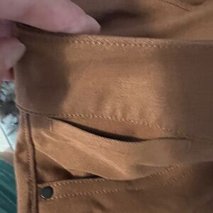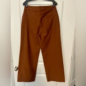 City sleek 5 pocket wide leg high rise pant in a beautiful roasted brown is versatile for fall! (I believe the color name was Bold Beige.) The utilitech fabric is fantastic and lightweight but has more of a typical pant feel without being constricting. These are in excellent condition and are full length. They were originally 31” but I used Lulu’s free hemming service to make them longer. See measurements. I am 5’10” and these are the perfect length. From a smoke free home and have been washed.