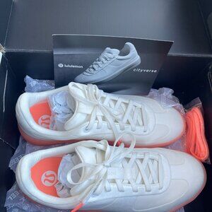 Women's Size 11 (US) white sneaker with apricot bottom and insoles. These have only been worn twice by me. They are super comfortable and a great walking shoe for exploring a new city.