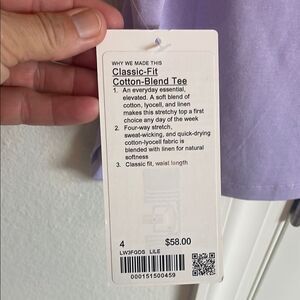 Perfect! Size 4. Lavender. Smoke free / pet free home.