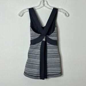 Lululemon Coal Strata Stripe Push UR Limits Tank Gray Black Womens Size 4