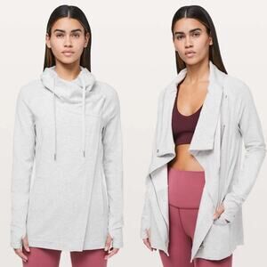 Lululemon Coast Easy Wrap Jacket Heathered Core Ultra Light Grey Cowl Neck (10)