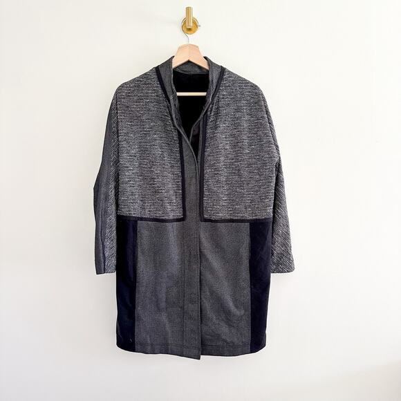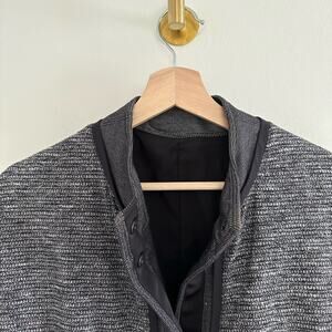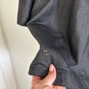 Details: Lululemon Cocoon Car Coat - Size: S- Color: Black / Coco Pique Black / Shine Dot Black - Features: Snap button closure, long sleeve, mock neck, lined, pockets, mid-length, outdoor, comfort, breathable, casual.
