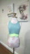 13 inches on the bottom by the rib cage and from top to bottom is 15 1/2 inches