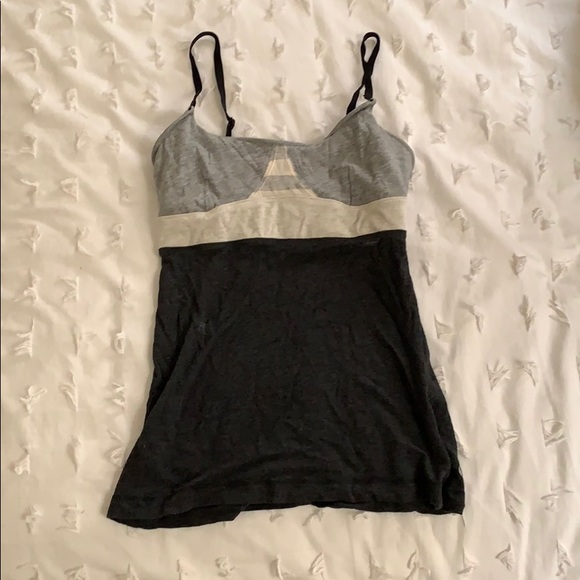 Gently used lululemon gray and cream color block tank with built in bra. Super cute and different than their other tanks! No tag but fits like a size 4