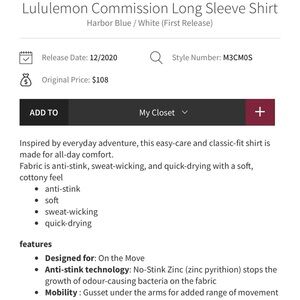 Lululemon Commission Long Sleeve Shirt