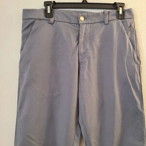 Lululemon Commission Pant Classic Qwick Chino Fog Horn. These classic-fit pants are inspired by the style of chinos. Our version is sweat-wicking and stretchy with our ABC engineering for all-day comfort and full freedom to move. Stash your phone securely in the zippered pocket at the hip. Flip the cuffs to reveal reflective detailing. There are spots on the backs of the legs.