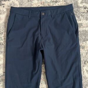 I think these pants were hemmed. The stitching is slightly undone in certain areas along the bottom.