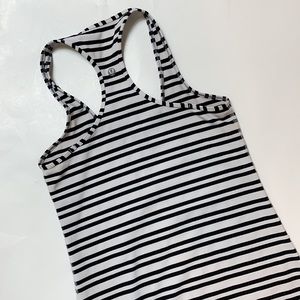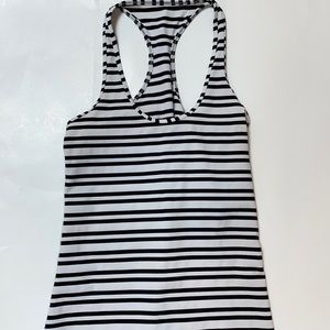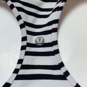 Class is Stripe Black White Lululemon Cool Racerback in size 4 (see pic for measurements) Wear with your favorite Flow Y bra. Made of Luon Light. Excellent condition.
