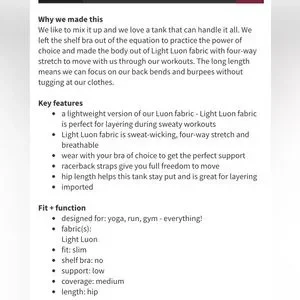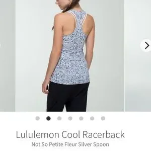 Lululemon Cool Racerback. Size 8. Pattern/color is Not So Petite Fleur Silver Spoon. Size hang tag was removed - exact measurements when laying flat are 16” across bust and 28” long from shoulder to hem. EXCELLENT CONDITION - LIKE NEW!! No trades