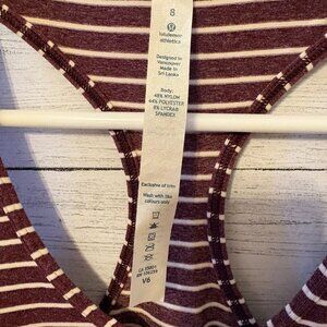 Lululemon Cool Racerback II Tank Burgundy White Stripe Size 8