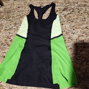 Black with neon green colorblock. Limited edition fabric that is bonded seamless, stretchy and cool to the touch.