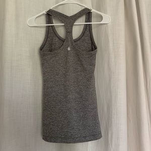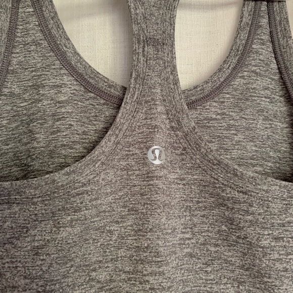 Lululemon Cool Racerback Tank in a heathered gray shade — bought a year ago, darker shade with more black undertones than the one they sell now. No flaws, perfect condition. I took out the tag, but it’s a size 4!