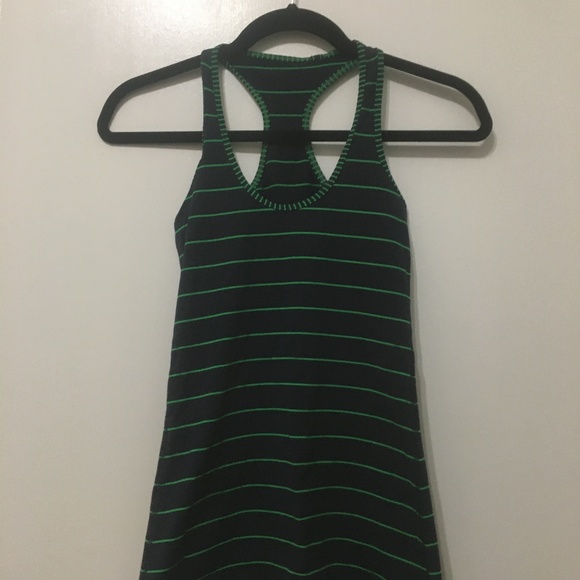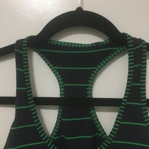 Green and blue striped versatile tank has a slim racerback and a contoured fit that stays put and out of your way when you're training hard.