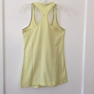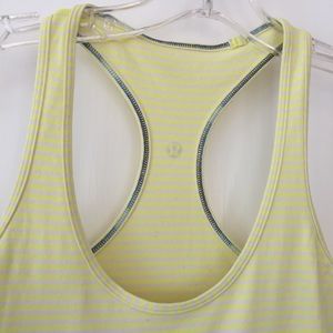 Lululemon Cool Racerback Tank in a striped light yellow and white color. No size tag but should fit a size 8. Perfect spring/summer colors! No pilling, seams are all perfect, not stretched out. Material is super soft and comfortable.