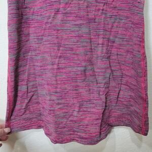 Lululemon Cool Racerback tank, jeweled Magenta striped hot pink purple. Wee are from Space. No size tag, but I believe it is Size 6. Measures 15" across pits and 27" from top of shoulder to hem. Nonsmoking home with awesome pugs and a crazy bulldog.