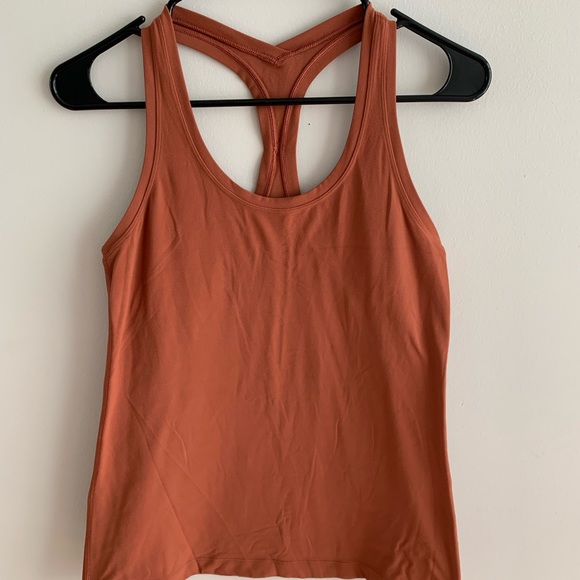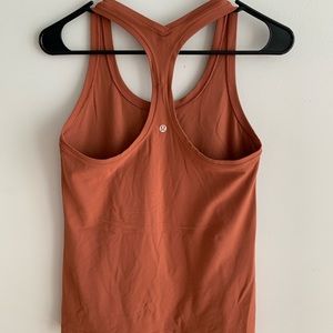 Lululemon Cool Racerback Tank Top in Nulu Fabric and Ancient Copper color. The size tag has been removed, but it is most likely a size 8 or 10.