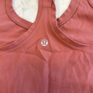 Lululemon Cool Racerback Tank. Does not have a built in bra. Tags have been removed. Likely a 6 or 8. Color is a dark mauve/ terracotta