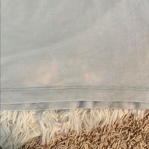 Not sure of exact color. Some bleach stains on the bottom, but when I wore it, I just tucked the bottom up to make it a little cropped.