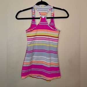 Lululemon Cool Racerback Tank Groovy Stripe Multi Colorway. So fun for summer! I can’t find the exact size on this, but it fits just like other Lululemon tanks I have in size 4.