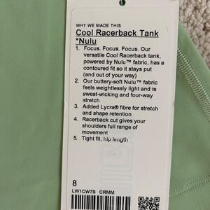 Lululemon Cool Racerback Tank Top *Nulu Creamy Mint Size 8