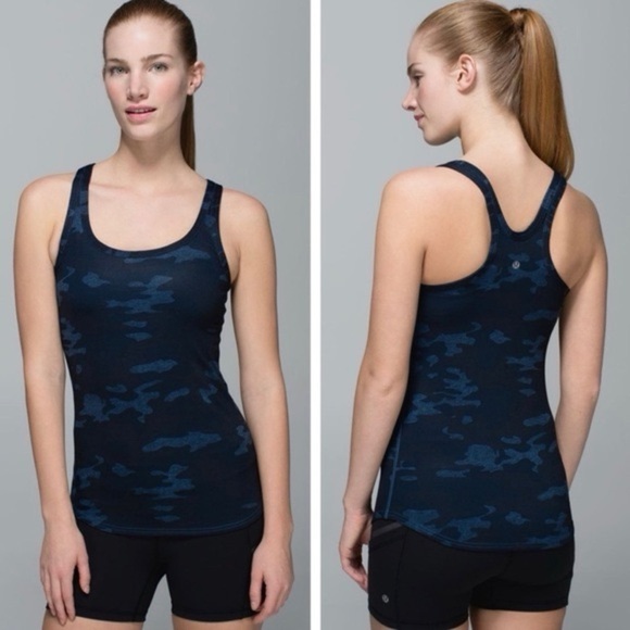 Classic Lululemon performance tank in subtle blue camo — perfect for yoga, running, or everyday athleisure wear.