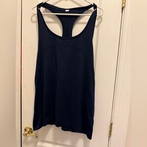 Lululemon Cool Racerback Tank Light Luon Size L True Navy in great condition logo in the back front to printed huge logo .