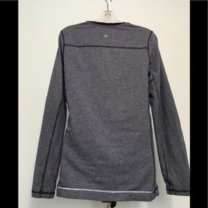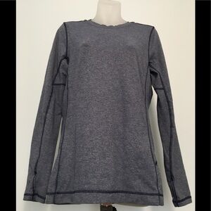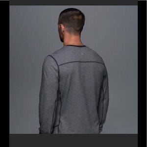 In excellent condition, no holes or stains, Men's Lululemon Core Crew SE reflective Long Sleeve, Color: Heathered Inkwell Black, thumbholes, stretchy, no trades