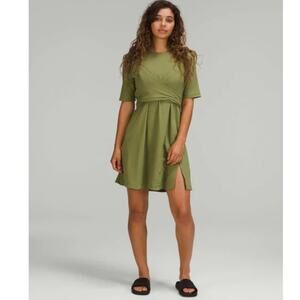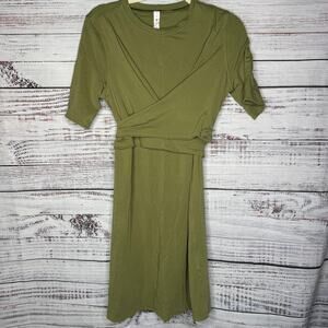 Lululemon Cotton Wrap-Front T-Shirt Dress Bronze Green NWOT 6