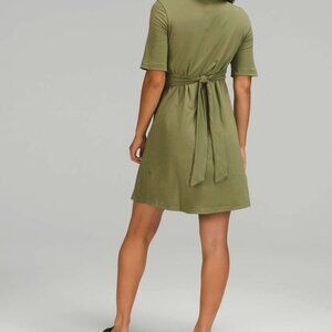 Lululemon Cotton Wrap-Front T-Shirt Dress Bronze Green size 4 NWT