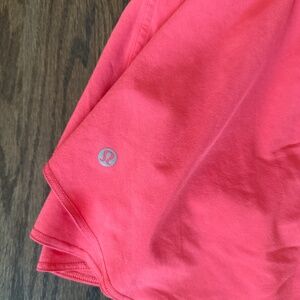 Gently used Lululemon Court Rival High Rise Tennis Skirt Pale Raspberry size 4, standard length. There is a small snag in the waistband on the front