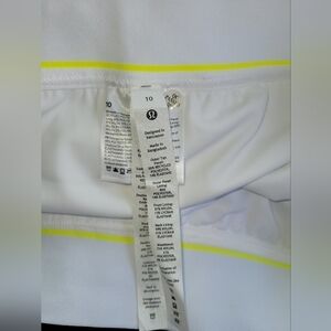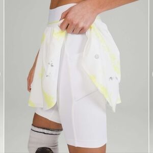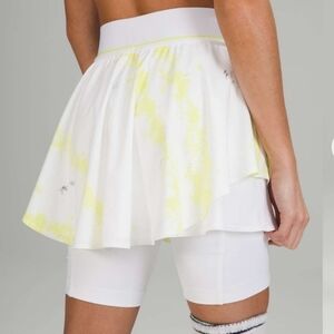 Lululemon Court Rival High-Rise Skirt Cross Court Wash Electric Lemon White Size 10 NEW WITH TAG On the court or on the trails, keep them on their toes in this lined, lightweight skirt. A longer liner adds coverage with every sprint. lightweight, swift fabric Lightweight Four-way stretch Sweat-wicking Quick-drying Luxtreme™ fabric liner has mesh panels for ventilation. It's sweat-wicking, has a cool, smooth feel, and contains added Lycra® fibre for four-way stretch and shape retention features Dual-entry pocket in the liner holds a tennis ball and your phone