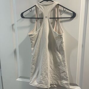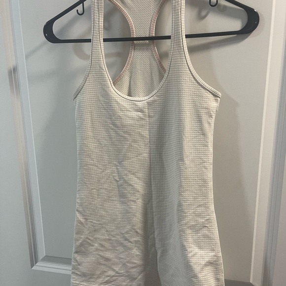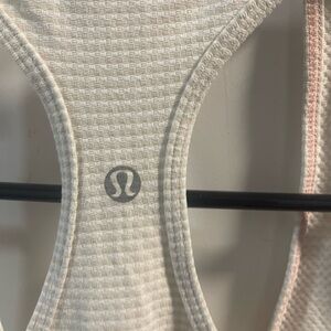 Cream textured racerback tank. Soft waffle-knit fabric. Simple, versatile silhouette. Great for layering or wear alone.