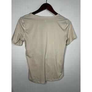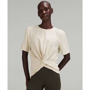 Lululemon Crescent T-Shirt in a beautiful bone color. This stylish and comfortable t-shirt is perfect for workouts, casual wear, or layering. The relaxed fit and soft fabric make it a must-have in your wardrobe. In excellent condition, ready for a new home. Get ready to elevate your activewear collection with this Lululemon gem!