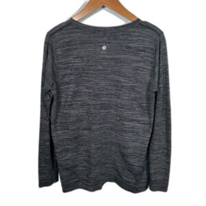 Lululemon Heathered Grey Black Crew Neck Long Sleeve Relaxed Breeze Swiftly Tech Knit Top Size 10 Athletic