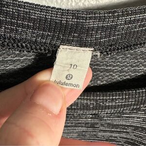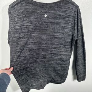 Lululemon Heathered Grey Black Crew Neck Long Sleeve Relaxed Breeze Swiftly Tech Knit Top Size 10 Athletic