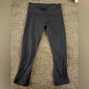 Experience the perfect blend of comfort and style with these black leggings from lululemon athletica. Crafted from a stretchy athletic fabric, they feature a fitted design throughout the leg and a wide, elastic waistband for a secure fit. Ideal for yoga or any active lifestyle, these leggings are a versatile addition to your wardrobe.