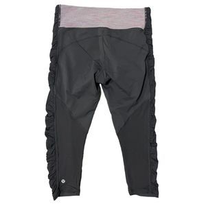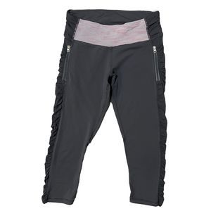 Lululemon Crop Leggings Size 6 Run in The Sun Ruched Zip Pockets Grey