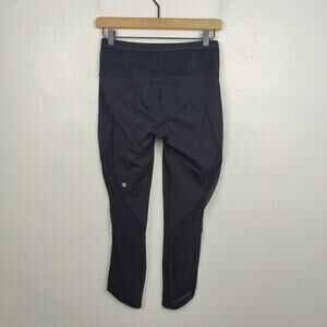 Lululemon Crop Leggings Womens 4 Black Mesh Activewear Running Gym Yoga