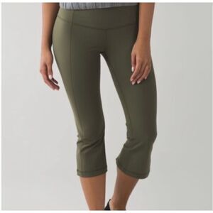 Lululemon Crop II Sz 6 Full On Luon Legging Fatigue Green Slit Vented Ruched. Pre-owned, very gently used with no flaws. Please see all pictures and read the measurements.