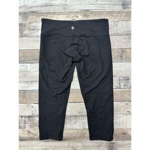 Lululemon Cropped Black Logo Activewear Yoga Pilates Workout Run Leggings Size 8